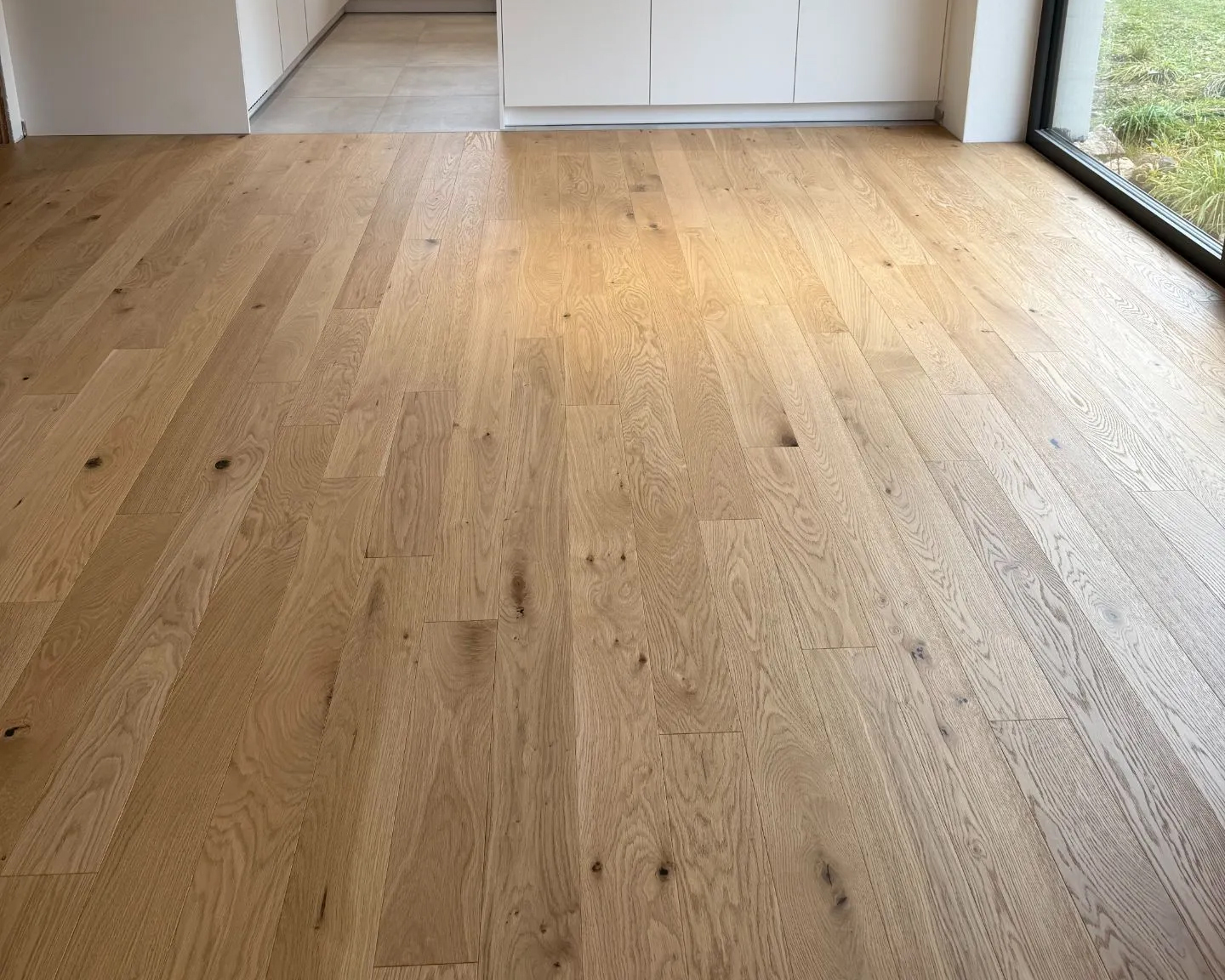 Dřevěná dubová podlaha menšího formátu s klidnějším tříděním, dřevěná podlaha za rozumné peníze.